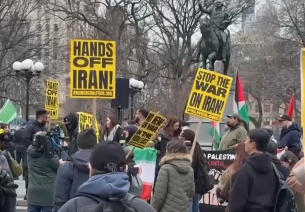 当天,纽约市曼哈顿联合广场聚集了数百名民众,他们高举伊朗国旗,手持“停止对伊朗战争”“不要插手伊朗”等标语,齐声高呼“当今世界最大的威胁是特朗普和美国”等反战口号,表达对战争的不满与对和平的渴求。