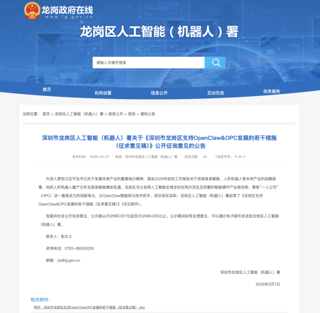 在技术热度迅速升温的同时,深圳的政策响应也几乎同步跟进。深圳一些政府部门已经尝试让“龙虾”在岗位上“上班”,用于分析民生诉求、辅助办理卫生许可等业务。