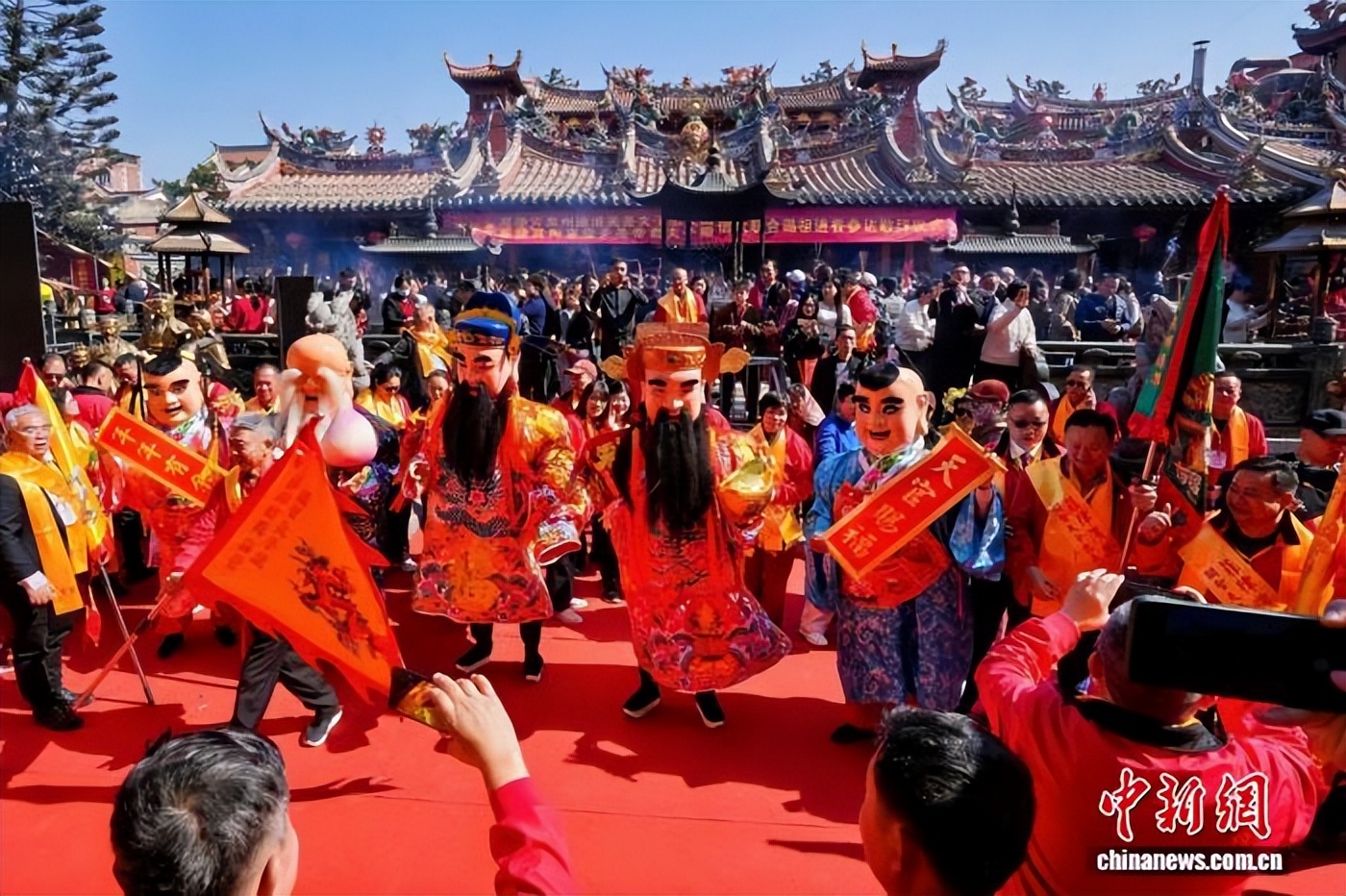 当天上午,大鼓吹、舞狮等极富闽南传统韵味的民俗开道,进香队伍浩浩荡荡走向泉州通淮关岳庙。在庙前广场,菲律宾信众遵循古礼,行初献礼、亚献礼、终献礼等“三献礼”仪式,表达对关公精神的敬仰和崇拜。庄严的古礼和精彩的民俗表演,吸引众多往来的市民和游客拍照留念。