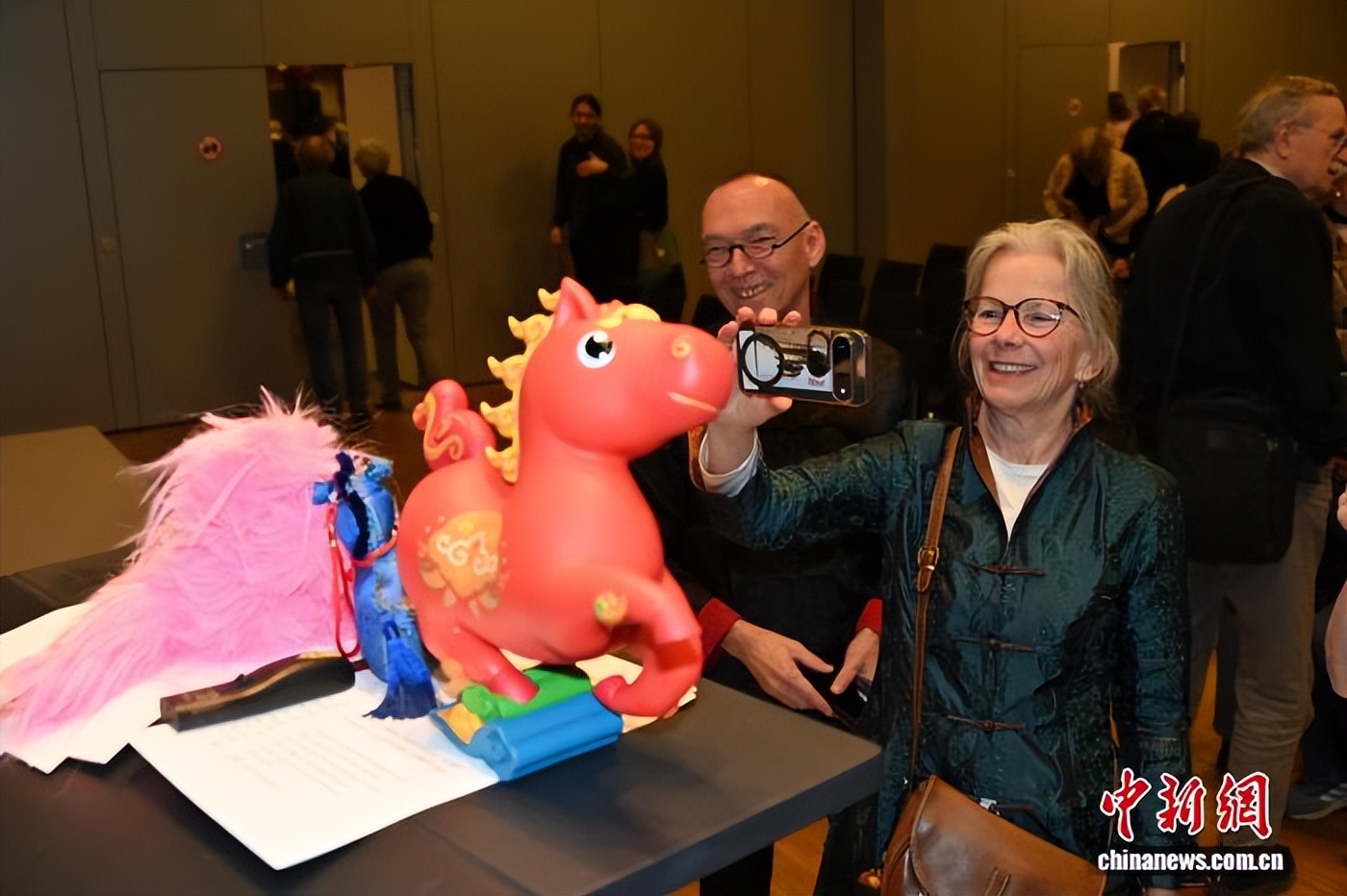 图为观众拍摄“吉祥马”摆件。柏林中国文化中心 供图