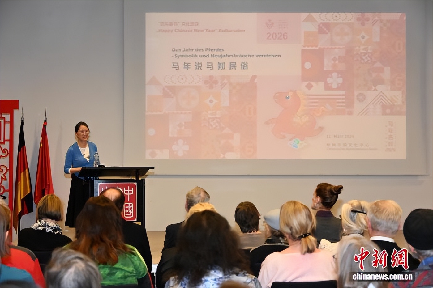 中新网柏林电 当地时间12日,柏林中国文化中心举办文化沙龙“马年说马知民俗”,吸引德国社会各界170余位观众参加。