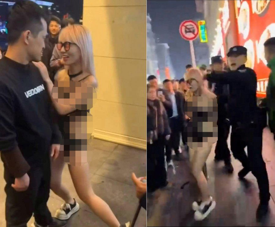 中国闹市爆离谱一幕 女子当街与男子上演不雅行为
