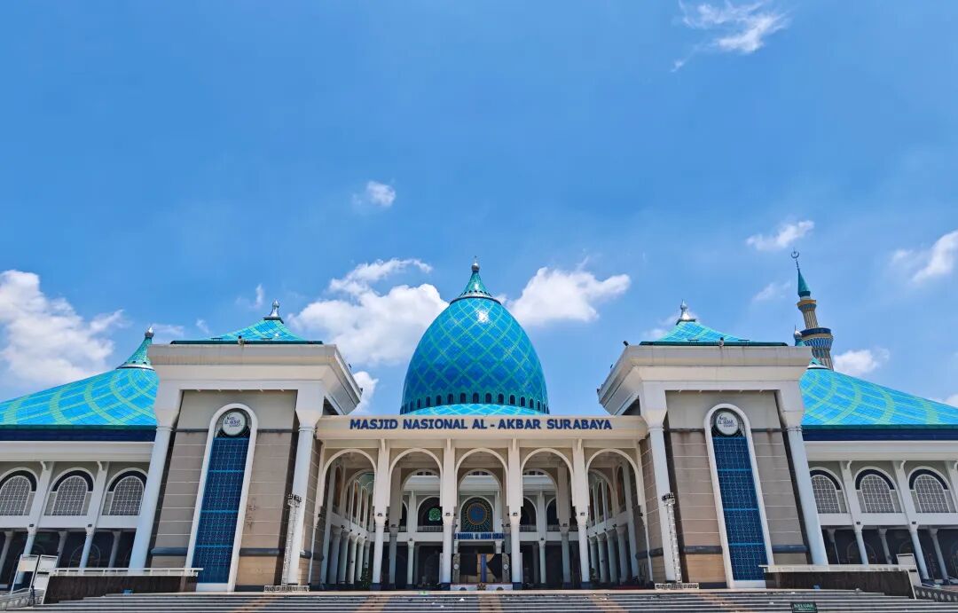 泗水阿克巴尔国家清真寺系印尼第二大清真寺、泗水市地标性建筑,于2000年建成,可容纳数万人礼拜,以其蓝绿色穹顶及99米高宣礼塔楼闻名,是集宗教、文化、教育、旅游为一体的综合性“伊斯兰中心”。