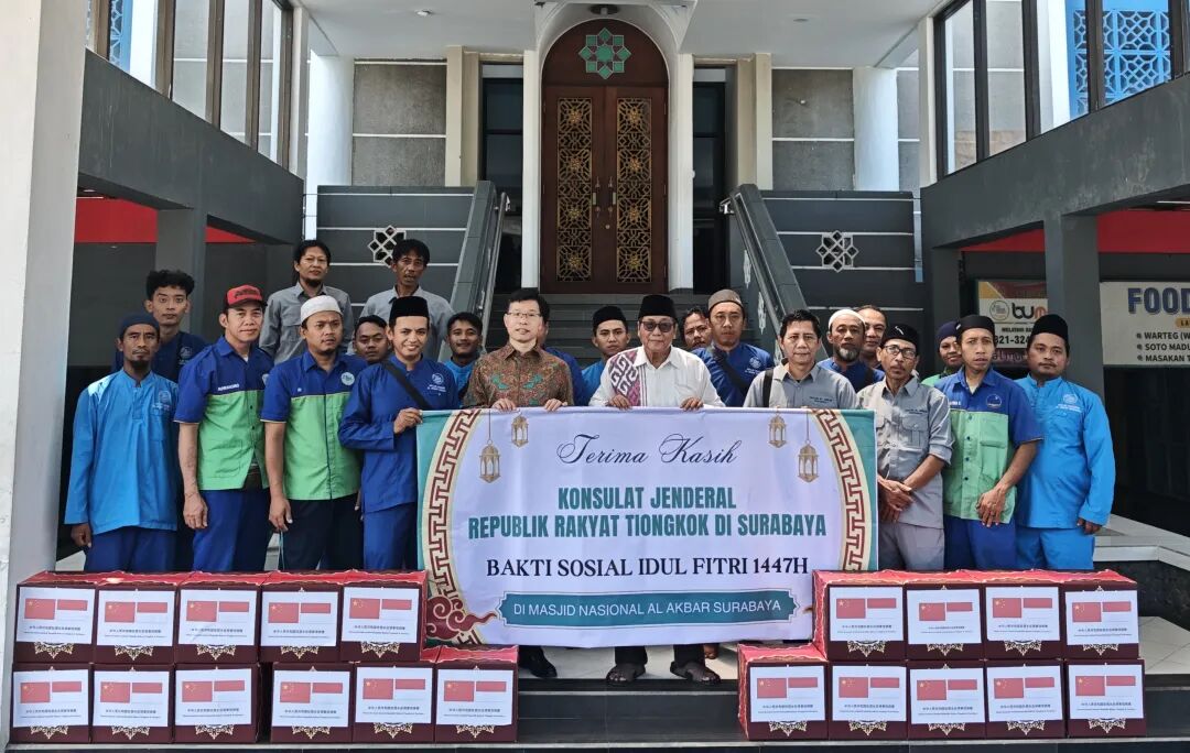 3月17日,中国驻泗水总领事叶素率青年外交官走访泗水阿克巴尔国家清真寺并出席斋月捐赠活动,副总领事谭大有、清真寺执行委员会主席苏加克等参加。