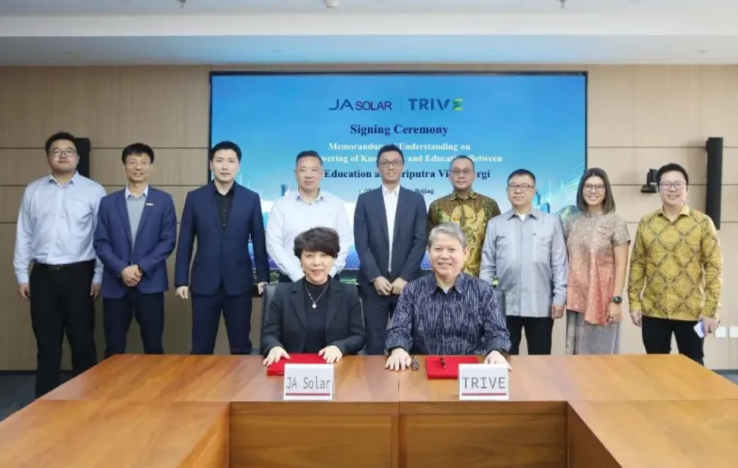 近年来,印尼政府通过发布“综合投资与政策计划”、推出“太阳能群岛”计划等举措,对光伏产业给予强劲政策支持,光伏市场需求持续攀升,光伏装机的经济效益与社会效益日益凸显,在此背景下,Triputra Group加快布局新能源赛道,积极寻求与全球领先光伏企业合作,这也是中印尼合作重点从基础设施建设转向清洁能源领域战略合作的重要体现。本次会谈中,双方合作取得实质性突破:不仅签署了组件采购协议,Triputra Group旗下子公司TRIVE还与晶澳科技共同成立合资公司,携手深耕印尼光伏市场,加速推动印尼可再生能源的普及与应用;与此同时,双方开启人才共育战略合作,晶澳科技投办的邢台新能源职业学院,将与Triputra Group旗下多所教育机构展开全方位合作,涵盖师生及学者交换互访、新能源类专业共建等多个领域,为双方合作及印尼新能源产业发展储备专业人才。