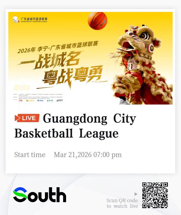 粵籍華僑華人家鄉的籃球盛事——2026年李寧·廣東省城市籃球聯賽(粵BA)今日(21日)熱烈開啟!首場揭幕戰廣州隊對陣中山隊於3月21日晚在天河體育中心體育館精彩上演。賽事匯聚全省21支勁旅,戰火將持續燃燒,誠邀全球粵籍鄉親透過直播,為您所屬的城市隊伍吶喊助威!
