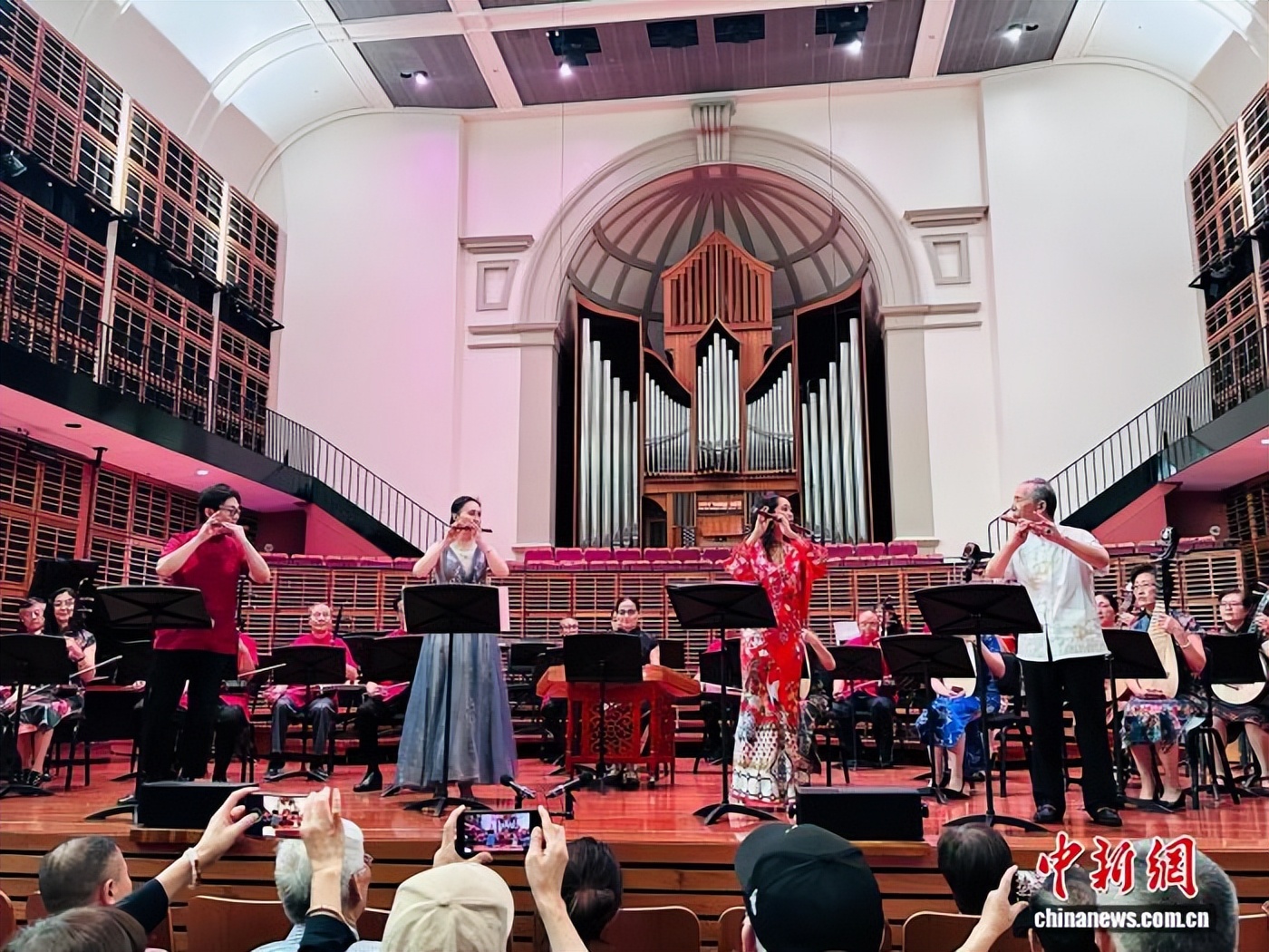 本场音乐会由澳大利亚喜洋洋乐团和澳大利亚澳视传媒主办,汇聚了当地多家华人乐团和合唱团,逾百人同台献艺。