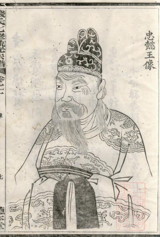 吴越忠懿王钱俶像。民国三年钱文德修《吴越钱氏七修流光宗谱》,上海图书馆藏