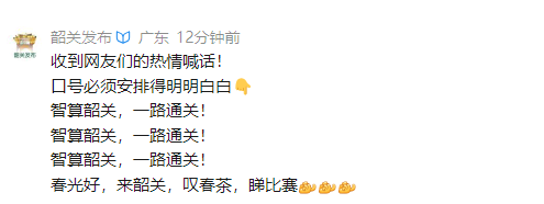 岭南名郡韶关,同样用行动诠释了什么叫“听劝”。面对网友的提问,不回避、不拖延,第二天就把口号补上。