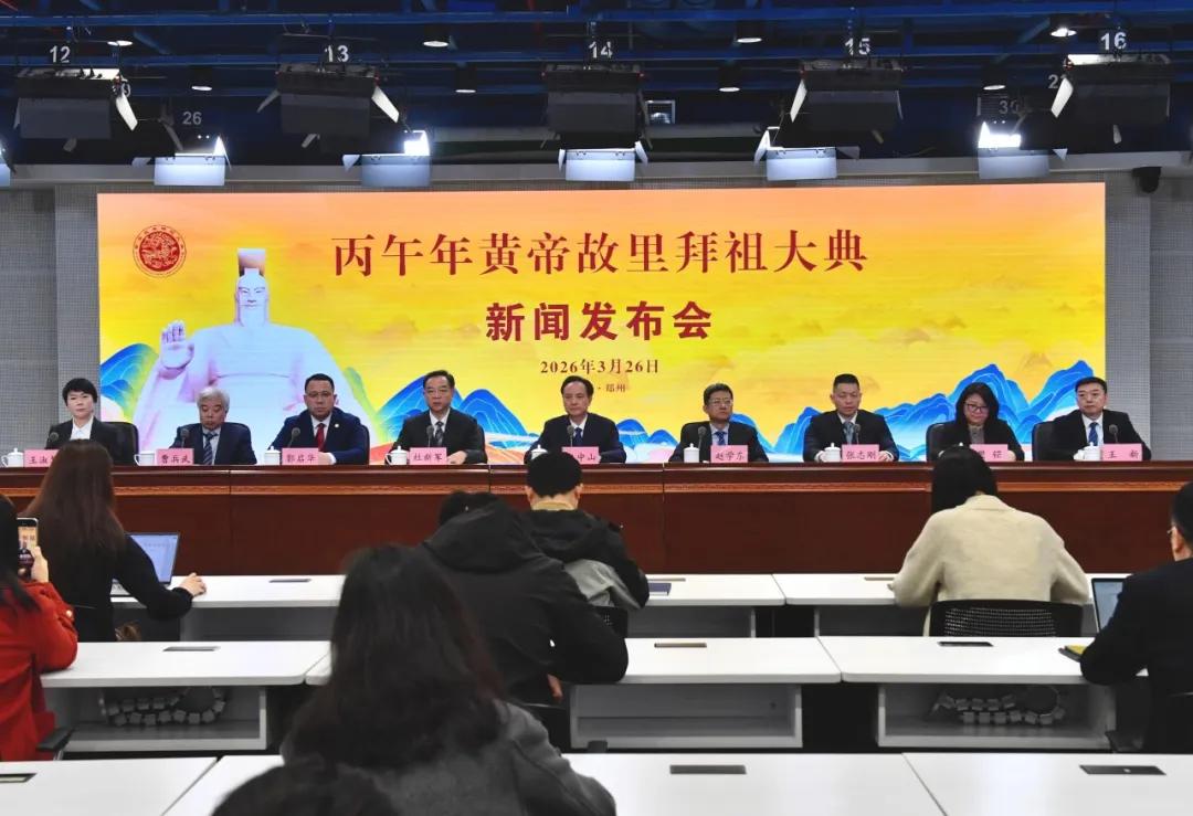 3月26日,丙午年黄帝故里拜祖大典新闻发布会在郑州市人民政府新闻发布厅召开,向海内外中华儿女郑重宣布:丙午年黄帝故里拜祖大典将于2026年4月19日,农历三月初三,在黄帝故里——中国河南·郑州新郑举办。