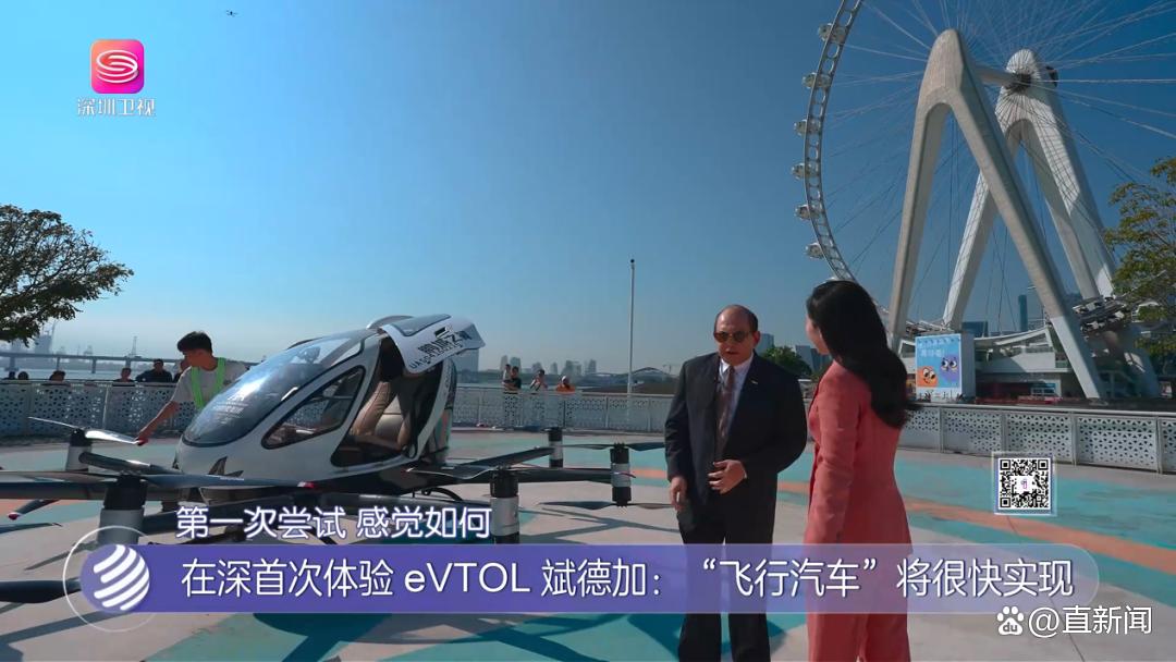 在位于深圳前海的欢乐港湾,斌德加第一次坐进了电动垂直起降飞行器(eVTOL)的座舱。