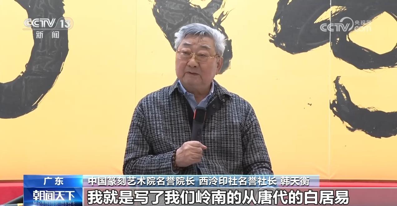 中国篆刻艺术院名誉院长、西泠印社名誉社长 韩天衡:我就是写了我们岭南的从唐代的白居易、宋代的苏轼、明清的一些大诗人,写了17首他们歌颂荔枝的诗。从各个角度反映了我们广东的风土人情,他们对广东的那种深厚的情感,跟对广东人的歌颂。