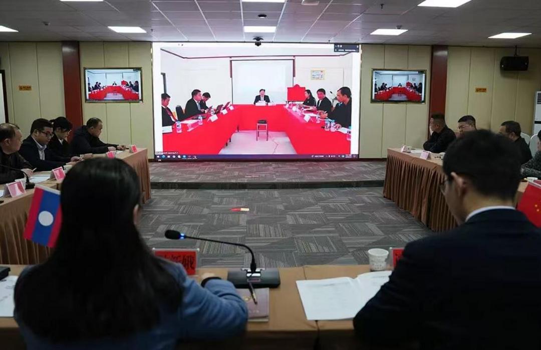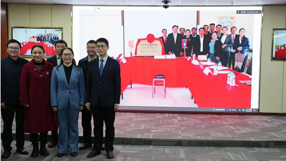在与会领导嘉宾的共同见证下,中老校企三方代表共同为“经世学堂”线上揭幕,老挝博胶省会场领导同步进行了现场揭牌。