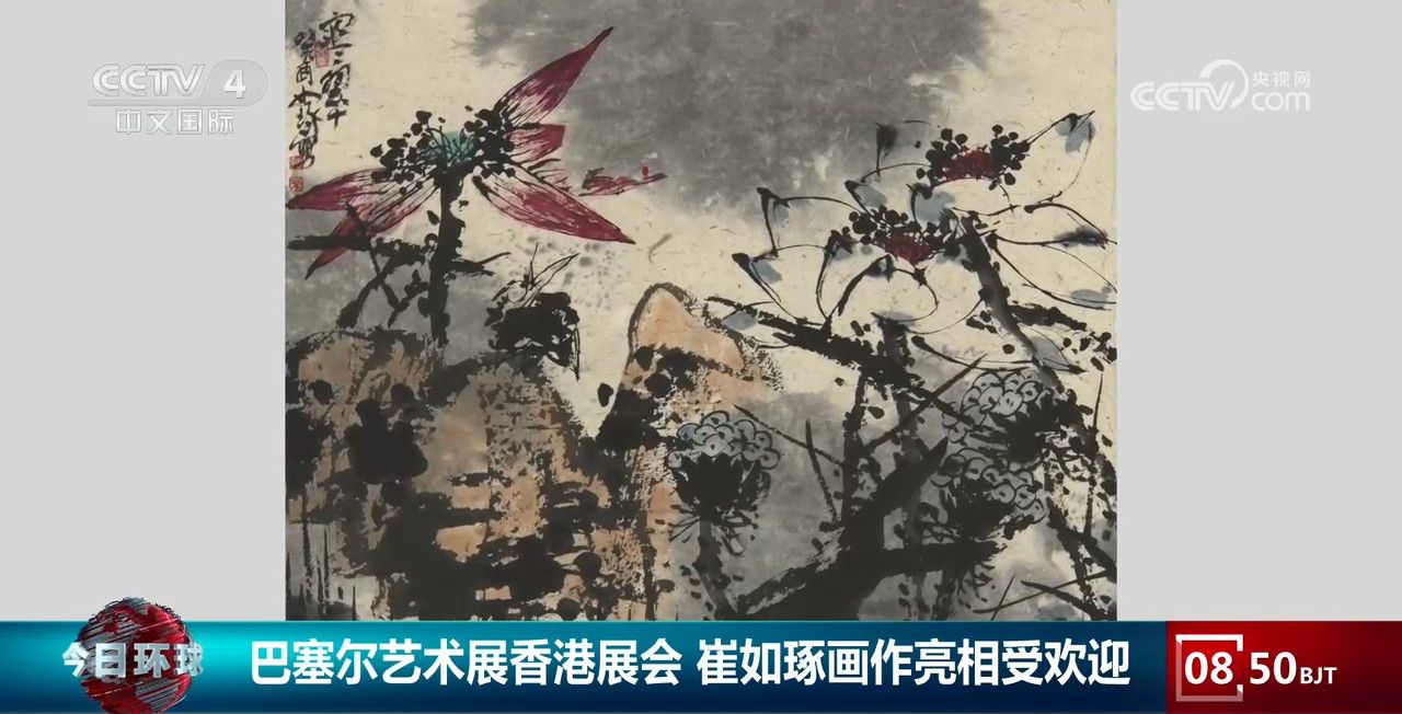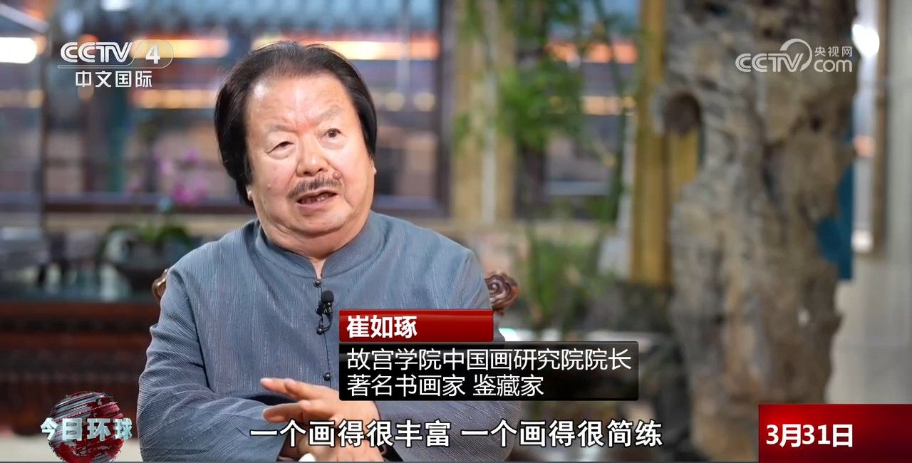 故宫学院中国画研究院院长、著名书画家、鉴藏家崔如琢:一个拿笔画的,一个拿手画的,一个画得很丰富,一个画得很简练。那雨景春景画的是积墨、泼墨,层次有很多,但是又很有特点。那荷花积墨、指墨,都不一样,都有不同的特点,我们不只是看到参加一个展览,应该意识到我们的文化和艺术要走向世界,要和西方并驾齐驱,要在地球上百花齐放,西方的花、东方的花大家都要盛开。
