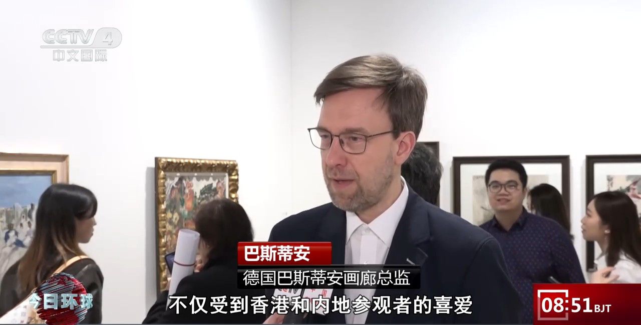 德国巴斯蒂安画廊总监巴斯蒂安:我看到他(崔如琢)的作品不仅受到香港和内地参观者的喜爱,也同样受到来自欧洲、美国以及其他国家的国际参观者的欢迎。我觉得之所以大家喜欢,是由于崔如琢先生深谙传统笔墨精髓,又不拘泥于古法,他以一种特殊的墨法,将指墨、积墨、泼墨等技法推向新高度。这种独辟蹊径的创作方式,对于欧洲及海外观众而言,充满了别样的魅力与新意。