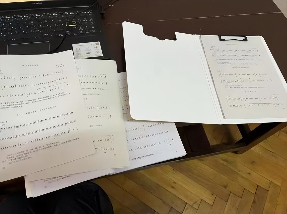 图为凌晨在准备琵琶曲谱。