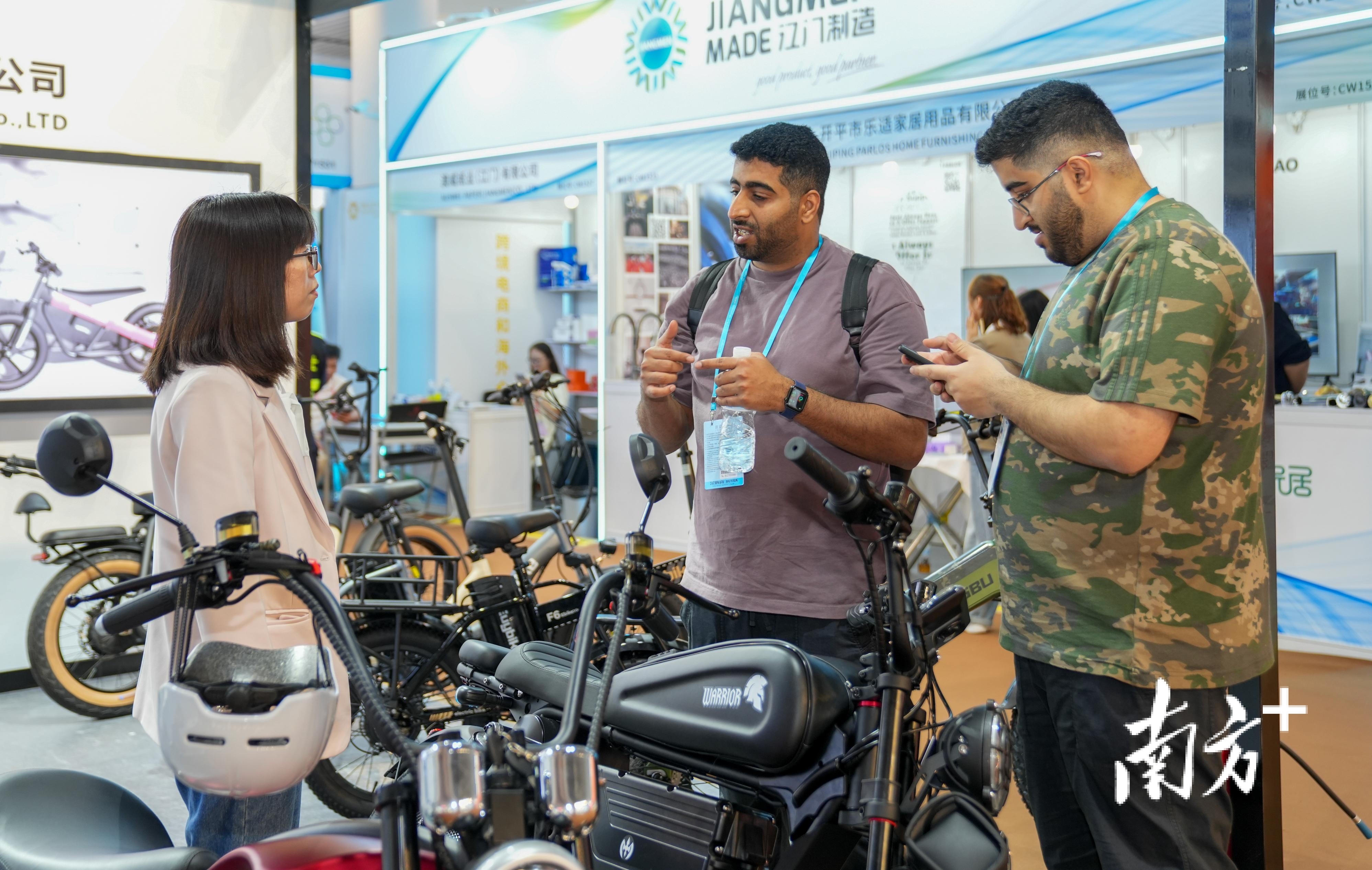 广交会上的江门造摩托吸引了众多境外采购商参观。南方+记者钟志辉摄