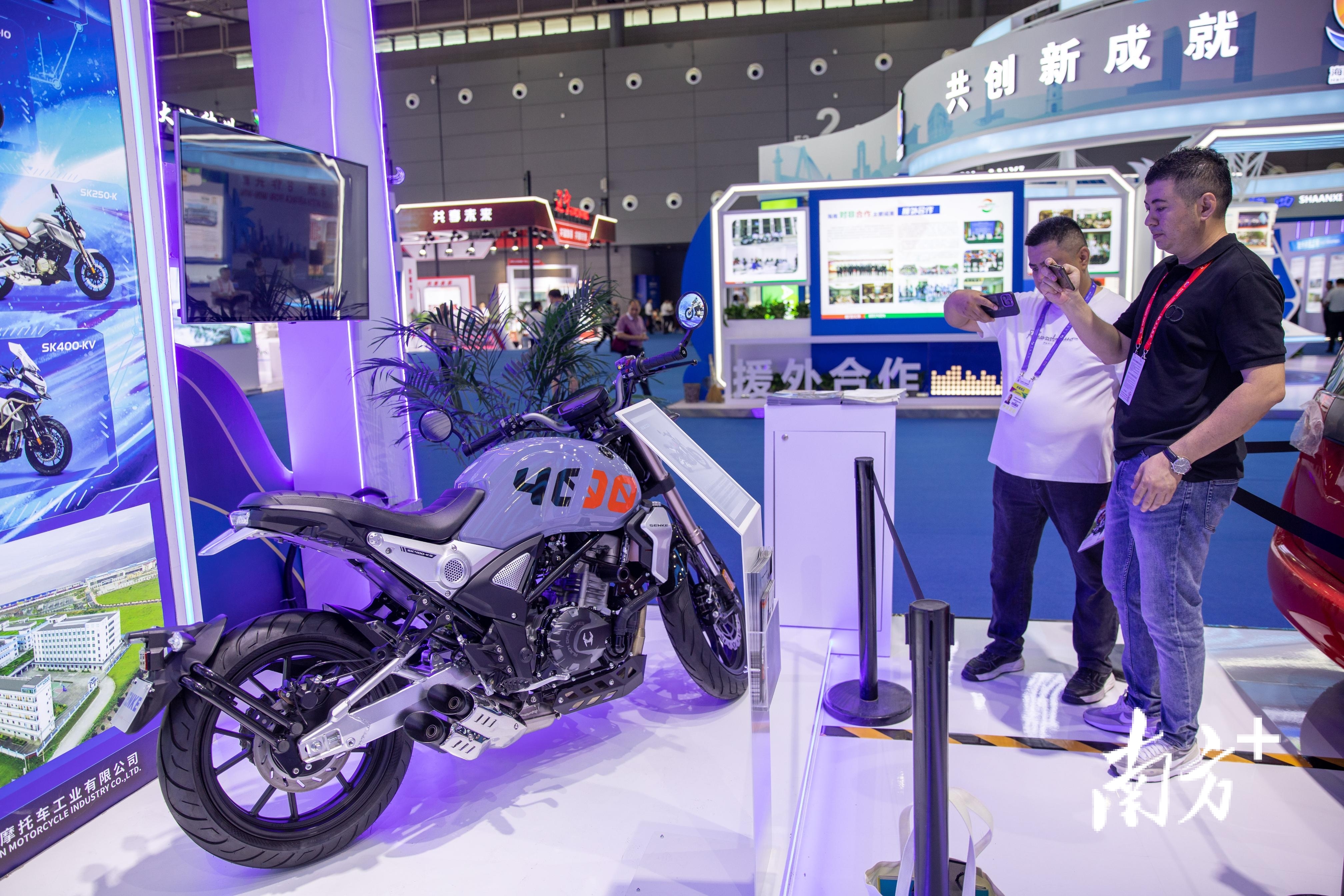 中非经贸博览会现场,广东馆展示的摩托车引发关注。南方+记者张令摄