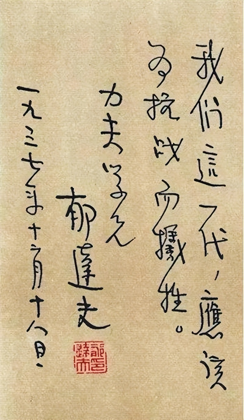 1937年底,郁达夫写给文学青年程力夫的短信:“我们这一代,应该为抗战而牺牲。”资料图片