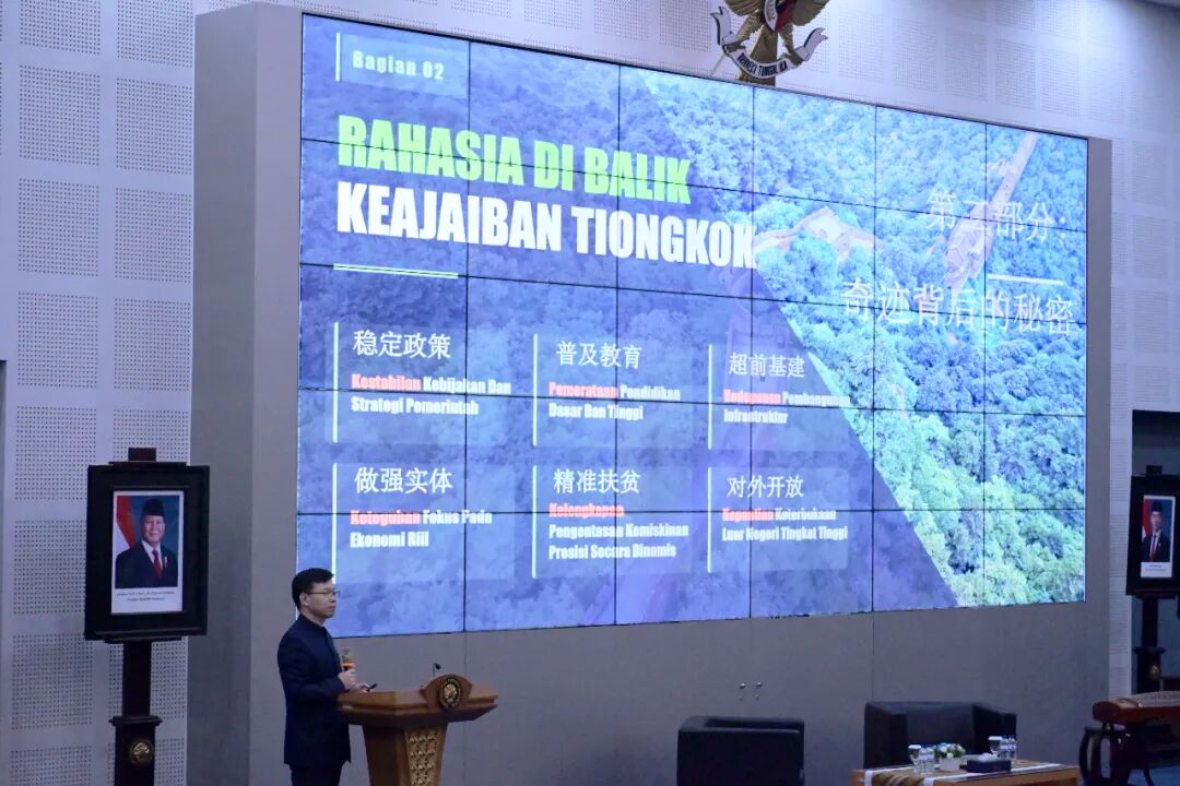 叶素总领事通过详实数据和客观事实深入阐释中国经济快速发展、社会长期稳定两大奇迹内涵及背后秘密,指出中国坚持立足国情、放眼世界,既强调独立自主,也注重合作共赢,中国实现两大发展奇迹的根本原因在于成功探索出一条符合世情、国情、民情的中国特色社会主义道路,强调刚刚结束的中国“两会”审议通过的“十五五”规划纲要覆盖经济社会发展重点领域和关键环节,为2035年基本实现社会主义现代化制定“施工图”。印尼作为中国好邻居、好朋友、好伙伴,必将从中国高质量发展中受益。欢迎更多印尼青年学习中文、到中国走走看看,了解真实、全面、立体的中国,为中印尼命运共同体建设贡献青春力量。