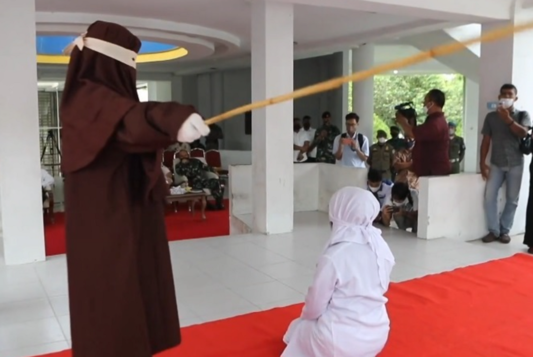 4月7日(周二),亚齐省执行公开鞭刑,一对未公开年龄的男女因发生婚前性行为,在班达亚齐一处公园内当着数十名民众的面,被执法人员用藤条分别鞭打100下。当天共有6人遭到鞭刑处罚,其中1名女子行刑时昏厥。