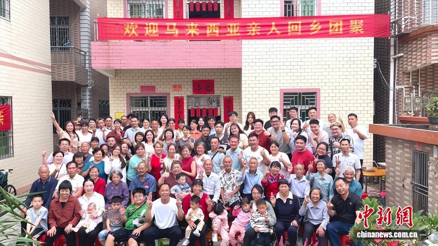 4月2日,广东茂名信宜市,刘伟伦、刘嘉丽等马来西亚侨胞与信宜家乡亲人合影。陈世亮 摄