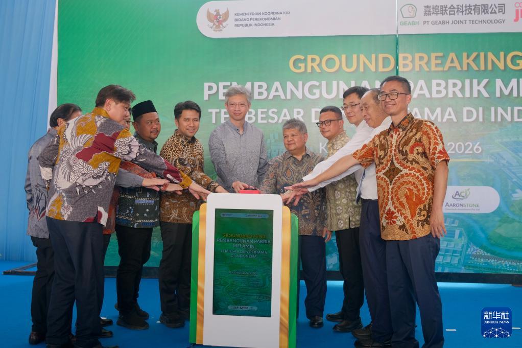 4月8日,嘉埠联合科技有限公司投资的印尼首个三聚氰胺项目在东爪哇省锦石经济特区举行开工仪式。 新华社记者 李嘉聪 摄