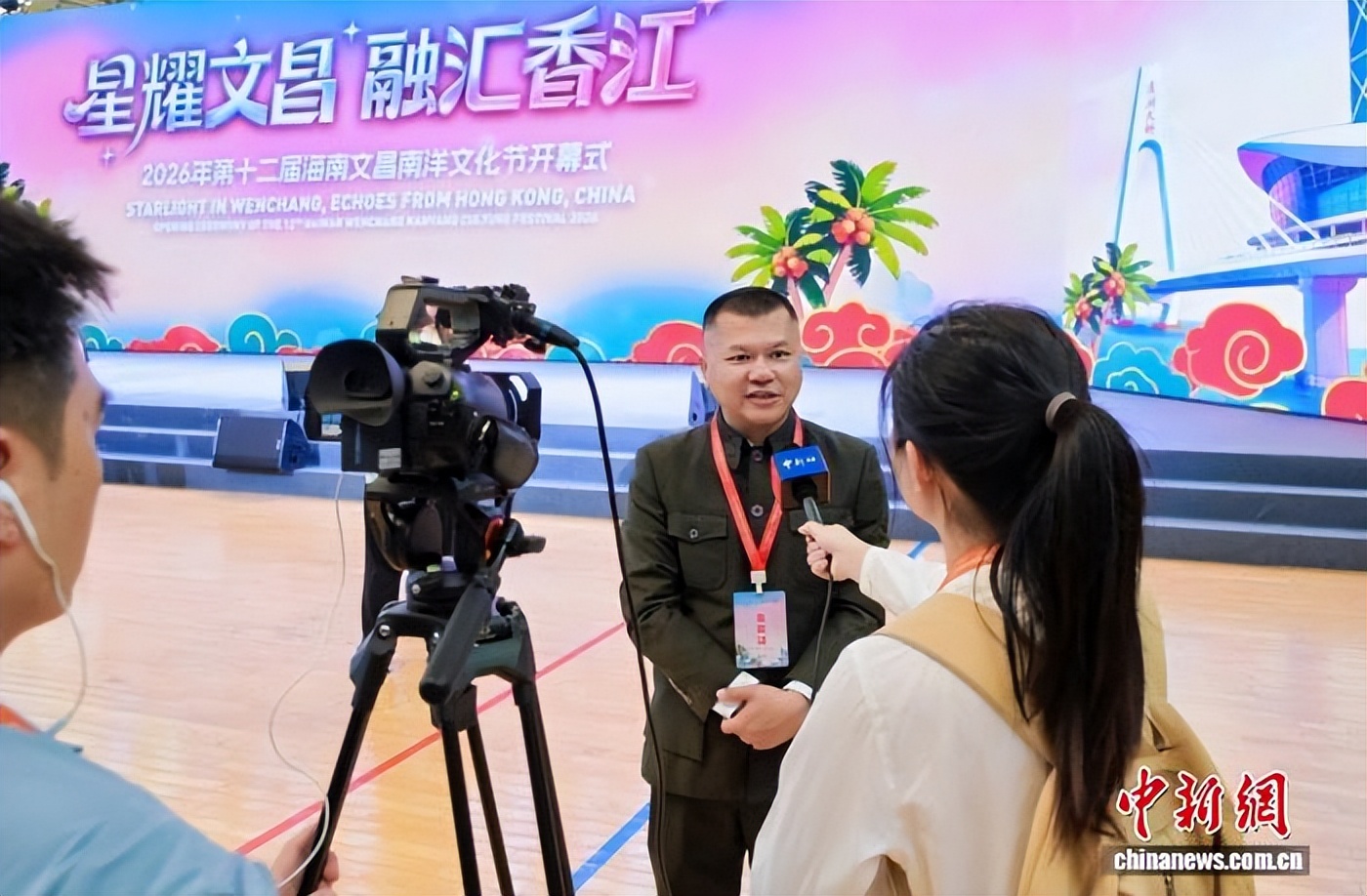图为符之帅在海南文昌南洋文化节上接受中新网记者采访。 文昌市融媒体中心 供图