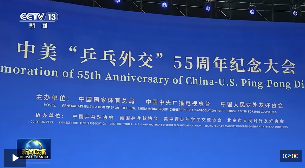 习近平向中美“乒乓外交”55周年纪念大会暨中美青少年体育交流系列活动启动仪式致贺信