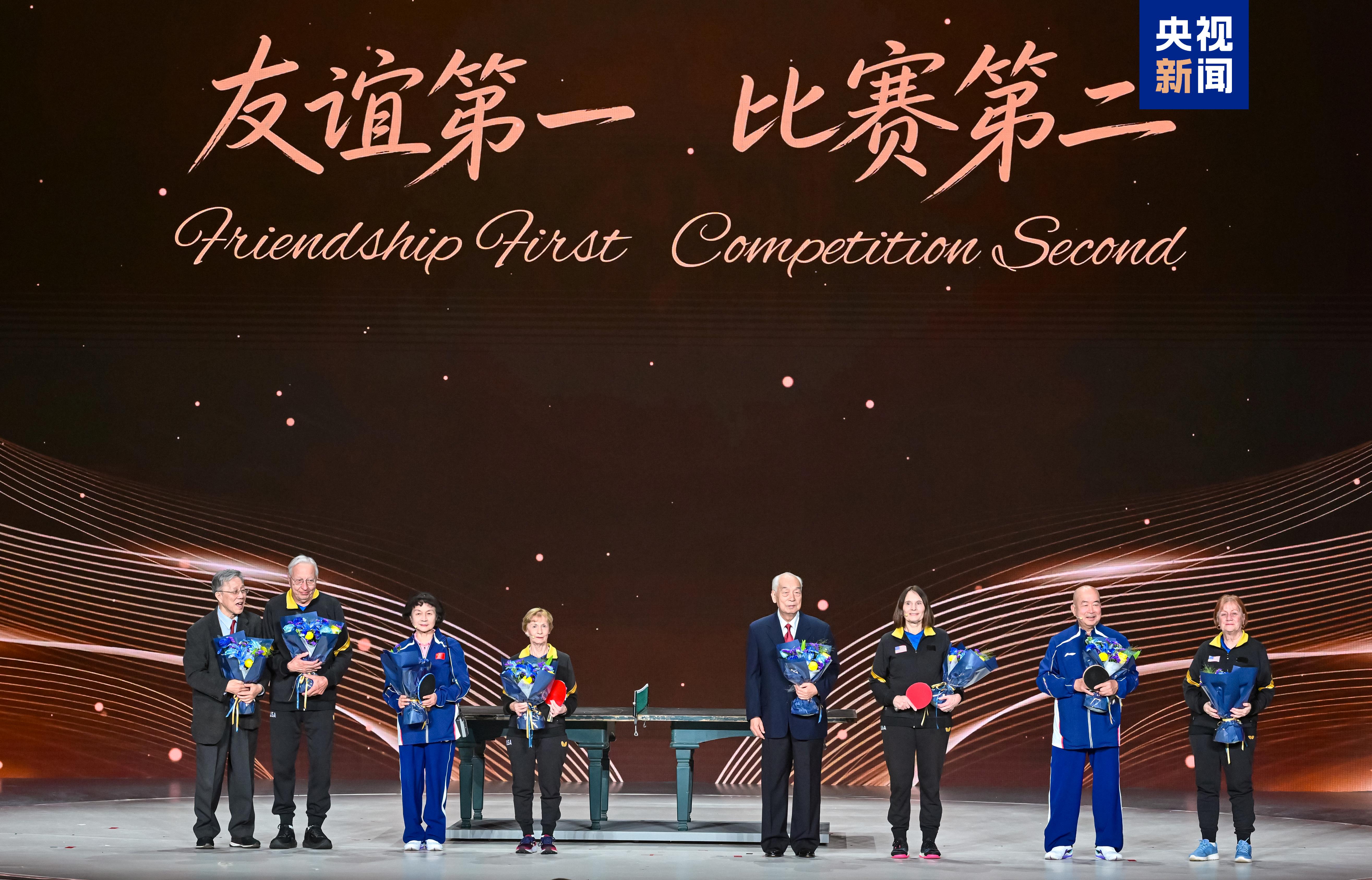 中央广播电视总台副台长邢博,北京市委副书记、北京市人民对外友好协会会长游钧,外交部部长助理蔡伟等出席活动。外交部、商务部、文化和旅游部、国家体育总局、中央广播电视总台、中国人民对外友好协会等相关部门负责同志,北京市和中国侨联、中国美国人民友好协会、中国乒乓球协会等有关部门负责同志,美国驻华大使馆、美国华盛顿州、艾奥瓦州、美国乒乓球协会、美中航空遗产基金会等机构和政府代表参加活动。