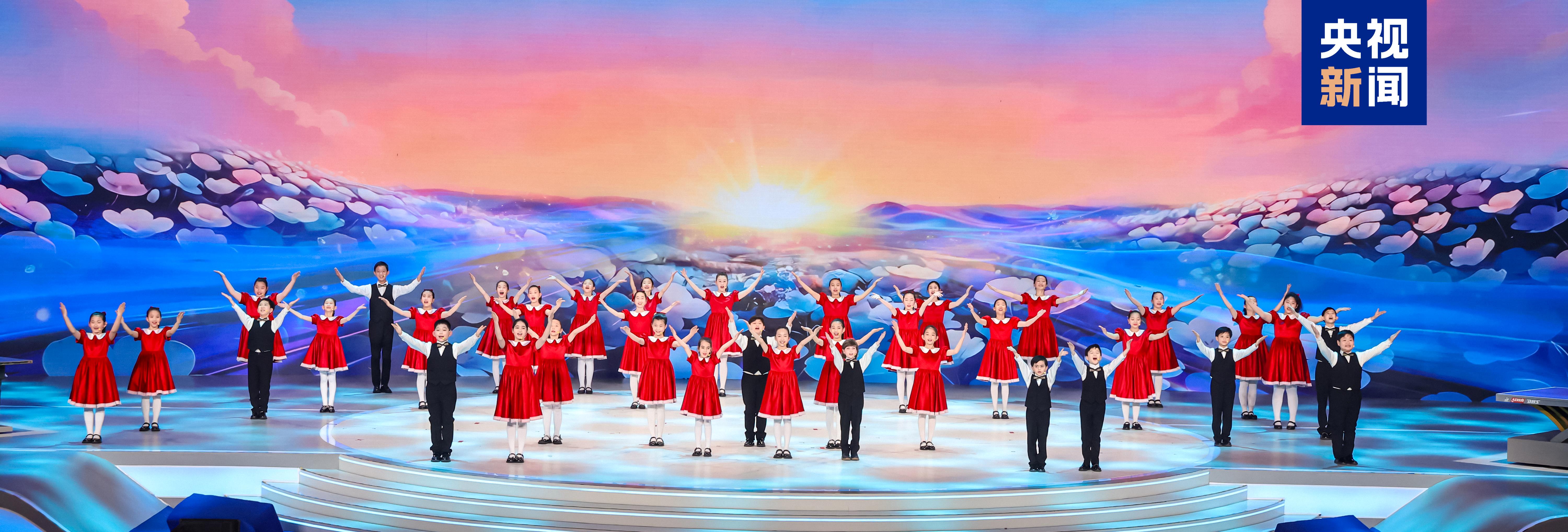 中美青少年现场合唱歌曲《银球飞舞花盛开》,以清澈悠扬的歌声,唱出了两国青少年携手同行、共筑友谊的美好愿景。