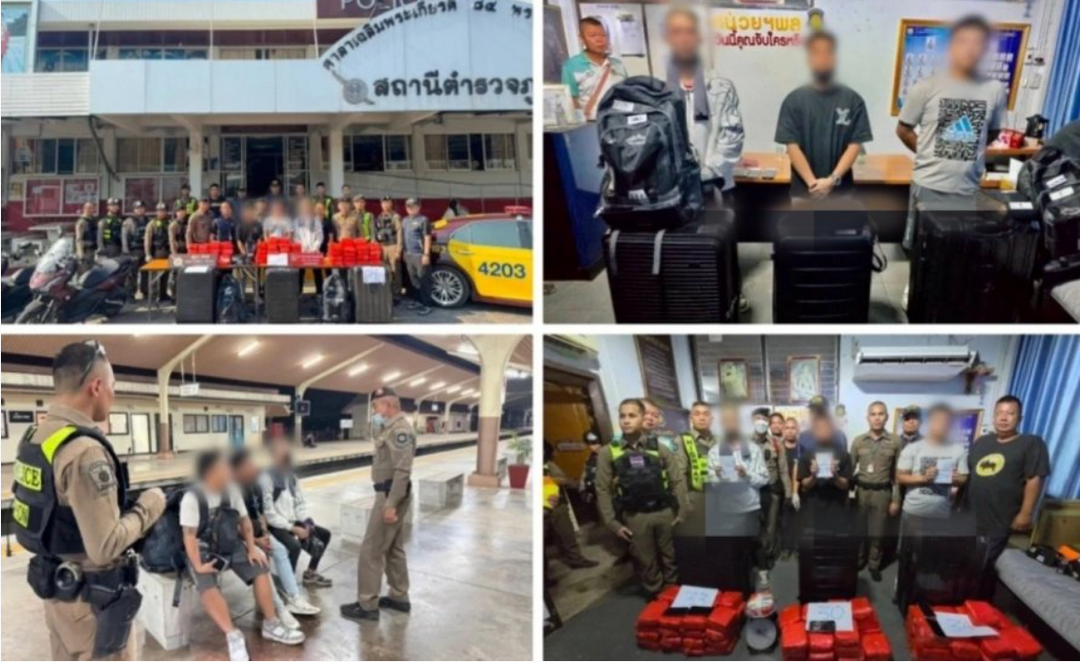 泰国警方通报,近日在一列开往曼谷的火车上展开联合行动,在泰国东北部孔敬府逮捕3名马来西亚男子,并当场查获约97公斤冰毒。