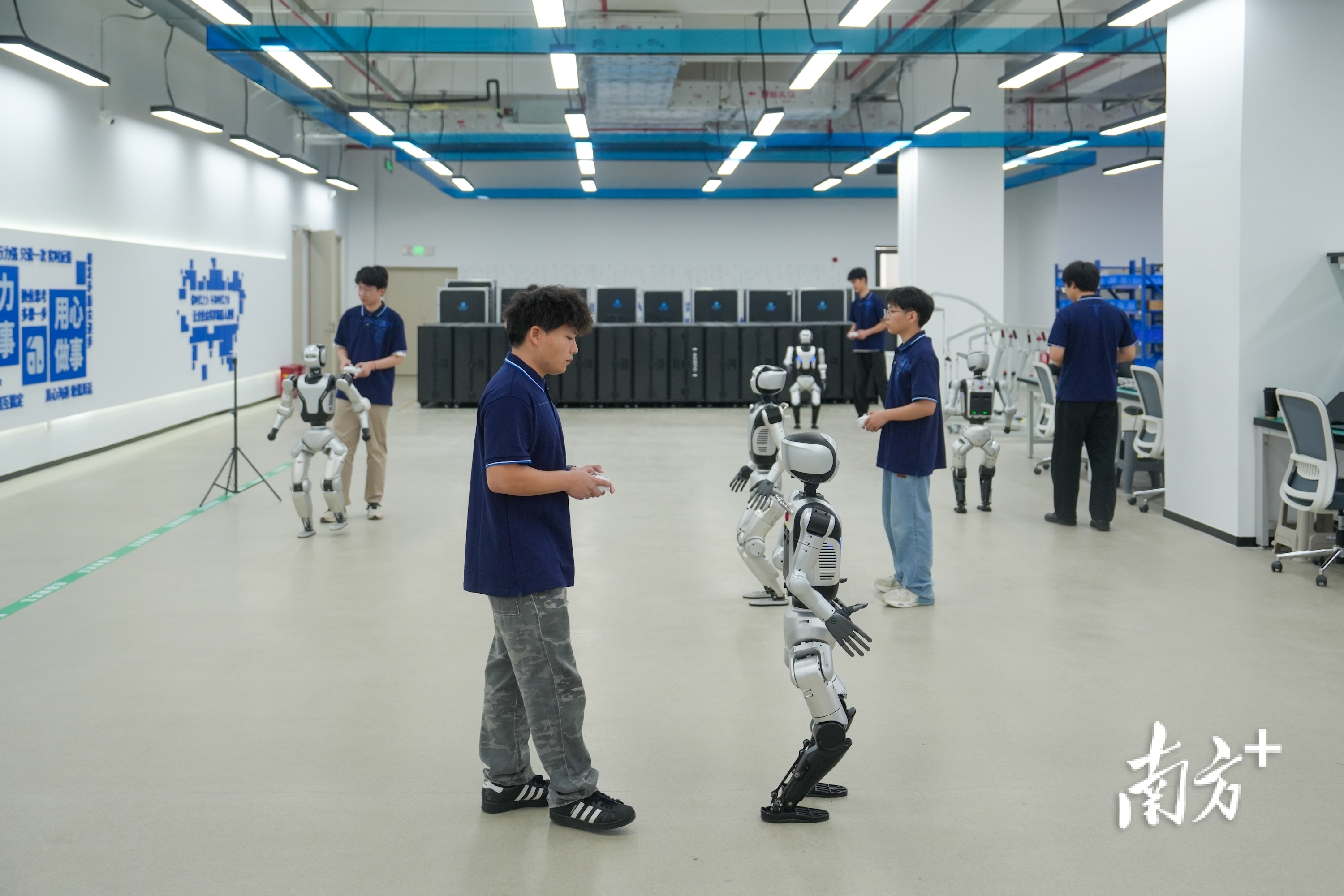 在这里,10多台人形机器人来回踱步、调试,每一台都要“磨”上四五个月,反复考验整机平衡性、稳定性与可靠性。