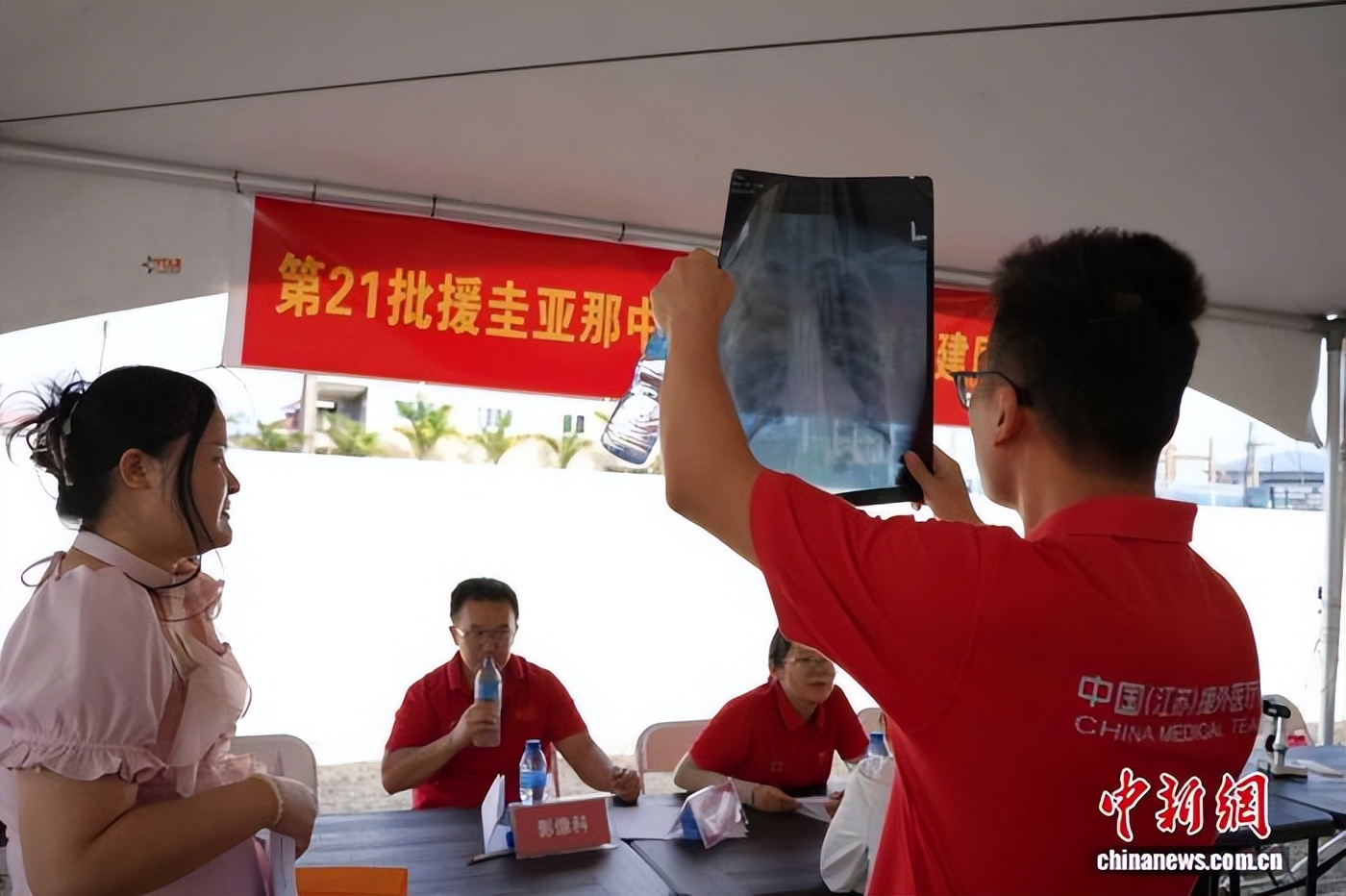 中新网圭亚那乔治敦电 (李妍雨)当地时间4月12日,圭亚那首都乔治敦的圭亚那福建同乡会会所内,第21批援圭亚那中国医疗队的大型义诊活动正在如火如荼地进行。