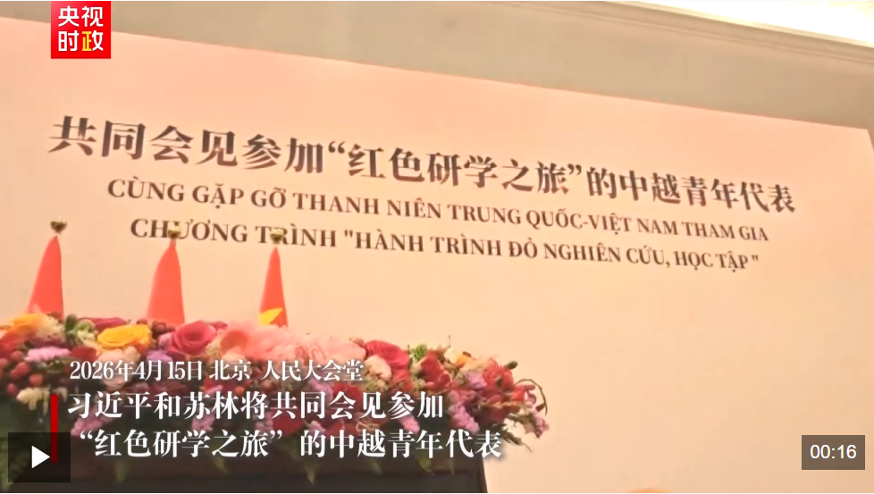 中國新聞亮點關注東盟新聞 独家视频丨习近平和苏林将共同会见参加“红色研学之旅”的中越青年代表 2026 年 4 月 15 日 4月15日上午,中共中央总书记、国家主席习近平和越共中央总书记、国家主席苏林将在北京人民大会堂共同会见参加“红色研学之旅”的中越青年代表。 央视网