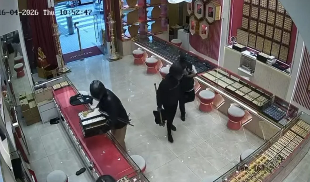 马来西亚吉隆坡一间金店遭四名劫匪持枪洗劫,劫匪抢走总值约970万令吉的金饰后迅速逃逸,目前警方正全力追查嫌犯下落。