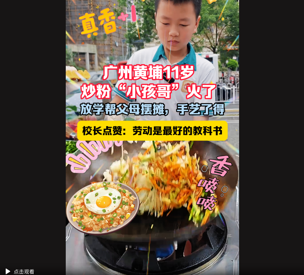 广州11岁炒粉“小孩哥”走红,校长点赞:劳动是最好教科书