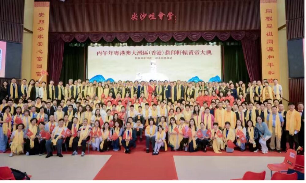 在香港,4月14日上午,丙午年粵港澳大灣區(香港)恭拜軒轅黃帝大典暨十周年盛典在香港尖沙咀會堂隆重舉行。現場氛圍肅穆祥和,「同根同祖同源,和平和睦和諧」主題標語鮮明醒目。粵港澳大灣區政界、僑界、商界代表,社團領袖、青年代表等近500人齊聚香江水畔,懷著無限崇敬,共拜中華人文始祖黃帝、共敘鄉情、共祝中華繁榮昌盛、共祈粵港澳大灣區美好未來。