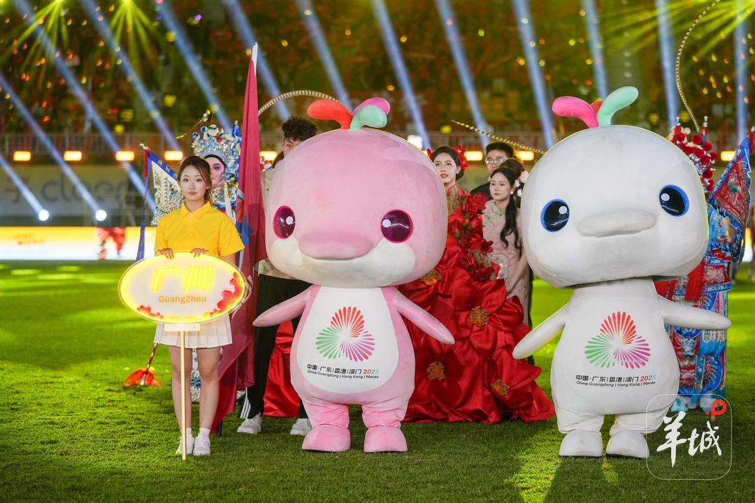 绿茵风华,绽放光彩!一城一韵、一队一景!在“大湾鸡”的引领下,在独具特色的说唱节奏中,21城代表队方阵分为东区、西区战队依次入场,以城市文化地标、文旅特色为主题,展现南粤多元城市魅力与足球活力,足球化身城市名片,串联起南粤大地的万千风华。