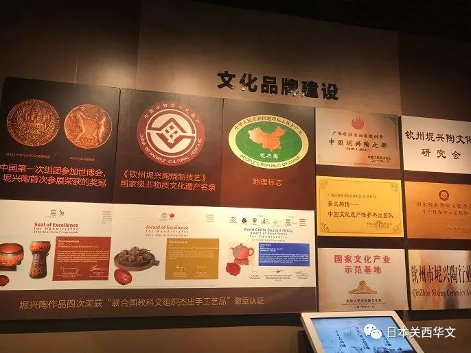 正如在钦州坭兴陶博物馆展出的“第二届中国四大名陶展”的主题所标明的那样,钦州坭兴陶是在1953年由当时的国家轻工部命名,与江苏宜兴紫砂陶、云南建水陶、重庆荣昌陶齐名的“中国四大名陶”之一。而说起坭兴陶的历史,最早可追溯到唐朝。1920年,钦州市钦南区(当时的钦县)出土了刻于唐朝、以巨型陶碑制作的唐朝封州刺史、钦州籍官员宁道务墓志铭。1945年的《钦县县志》记载:“我钦陶器,谅发明于唐以前,至唐而益精致。”钦州陶器,尤以明代的“四六瓦”精陶为标志,清代咸丰年间发展至鼎盛,钦州坭兴陶得以广泛兴用,并开始得名“坭兴陶”。1915年,坭兴陶参加了在美国旧金山举办的巴拿马太平洋万国博览会,荣获金牌奖。