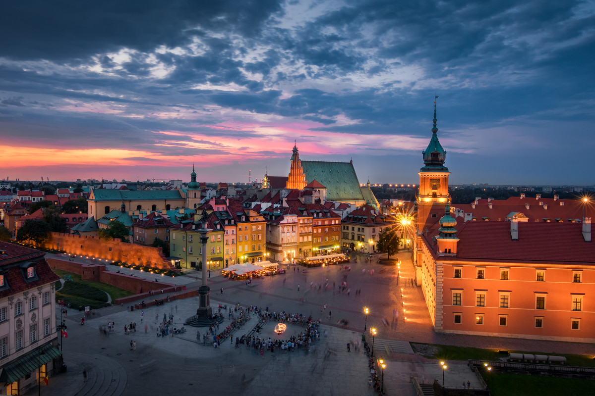 华沙一直保持着老城和新城的布局,各种历史纪念物、名胜古迹大都集中在老城区,新城区里则是现代化的高楼大厦,从空中俯瞰犹如一座城市的“两副面孔”。华沙老城的建筑虽然都是后期修复重建的,但这并不影响它的魅力。老城集市广场在18世纪前一直是城市的中心,如今广场周围都是餐馆、咖啡馆、礼品店等,夜幕降临广场上充斥着热闹欢快的烟火气息。