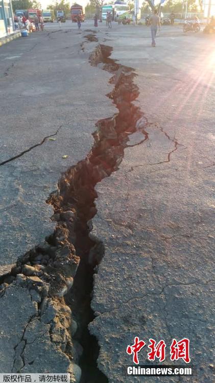 当地时间2018年8月20日,印尼龙目岛,地震造成Kayangan港口地面出现巨大裂缝。据印尼减灾机构发言人苏托波20日上午8时30分通过社交媒体“推特”发文称,19日22时56分该国龙目岛东北部附近海域发生6.9级地震,至20日上午8时仍余震不断。