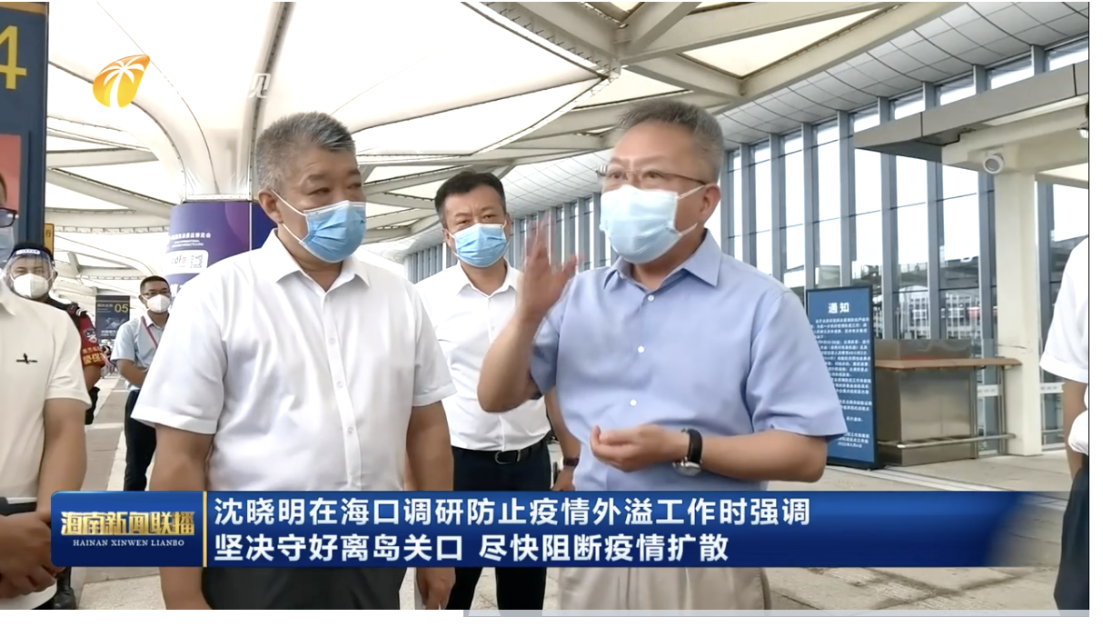 據海南新聞聯播報導,沈曉明強調要堅持以人民為中心,認真細緻,實事求是落實疫情防控措施,堅決守好離島關口,盡快阻斷疫情擴散,守護好群眾的安全健康。