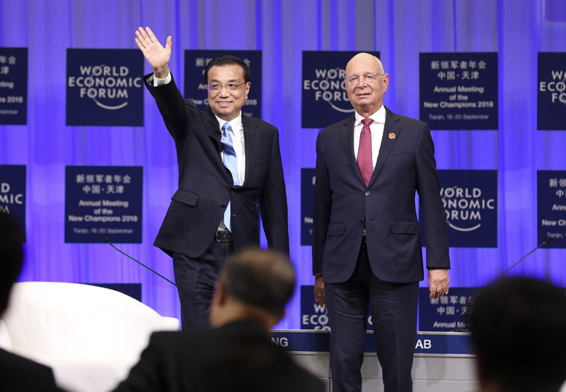 9月19日,2018年夏季达沃斯论坛在天津梅江会展中心开幕。中国国务院总理李克强出席论坛开幕式并发表特别致辞。这是李克强连续第六年以总理身份出席夏季达沃斯并发表开幕致辞。