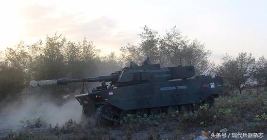 “卡普兰”中型坦克是由土耳其FNSS公司和印度尼西亚平达德公司在2014年启动的联合研发项目,其战斗全重为32吨,与我国VT-5相近。不过,由于“卡普兰”中型坦克采用的是土耳其FNSS公司“卡普兰”步兵战车底盘,而非专门研发的坦克底盘。所以,“卡普兰”中型坦克这样的战车以我国标准衡量,甚至都不能称为轻型坦克,划分为履带式突击炮或许更为恰当。