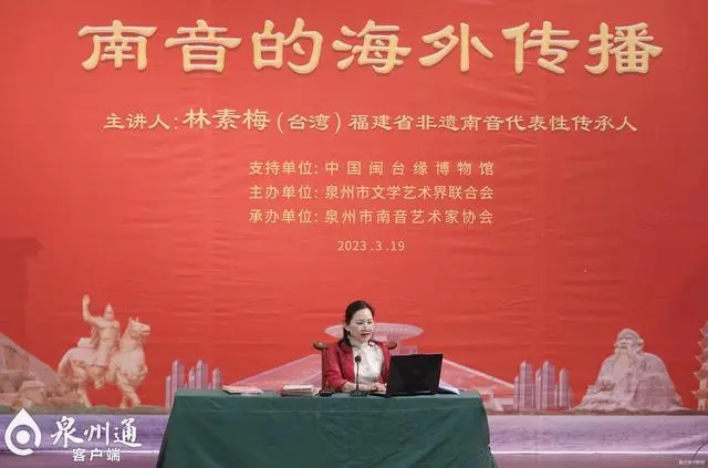 泉州晚报社·泉州通客户端3月22日讯 (泉州晚报记者 陈智勇 通讯员 陈家服)南音生南国,曲曲寄深情;海外寻故旧,鲤城有知音。日前,“名家进泉州——福建省非遗南音代表性传承人林素梅(台湾)《南音的海外传播》公益讲座”在中国闽台缘博物馆举行,台湾南音名家林素梅现场分享了南音在海外传播的概况。