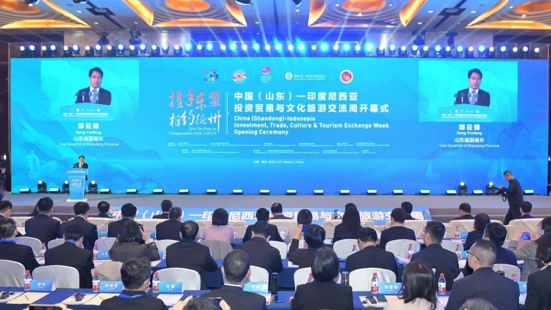 3月23日上午,“中国(山东)—印尼投资贸易与文化旅游交流周”活动在我市开幕。本次活动由德州市政府、省政府外事办、省教育厅、印度尼西亚驻华大使馆、中国—东盟中心和印度尼西亚银行北京代表处主办,旨在搭建与东盟国家交流合作的高能级平台,进一步推动我市与印度尼西亚及地方城市深度合作。