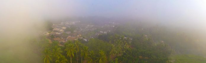 清晨,迎着朝霞,穿过烟雾缭绕浮云,高空俯瞰海南省定安县的中国历史文化名村高林古村落,另一番美景跃然眼前。