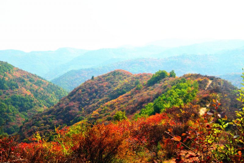 照金香山的深秋,层林尽染,姹紫嫣红,惹人陶醉!漫山红叶别样风韵,时而婉约,时而雄峻,漫步林中,踩着松软的落叶层,呼吸着清新的空气,让人心旷神怡、美不胜收。