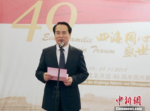 当地时间29日晚,“四海同心 盛世梦圆——华侨华人与改革开放40周年”图片展在杜塞尔多夫会展中心开展。所展图片既有改革开放重大历史事件的精彩瞬间,也有不少图片记录了海外侨胞在改革开放进程中心系祖(籍)国的动人场景。